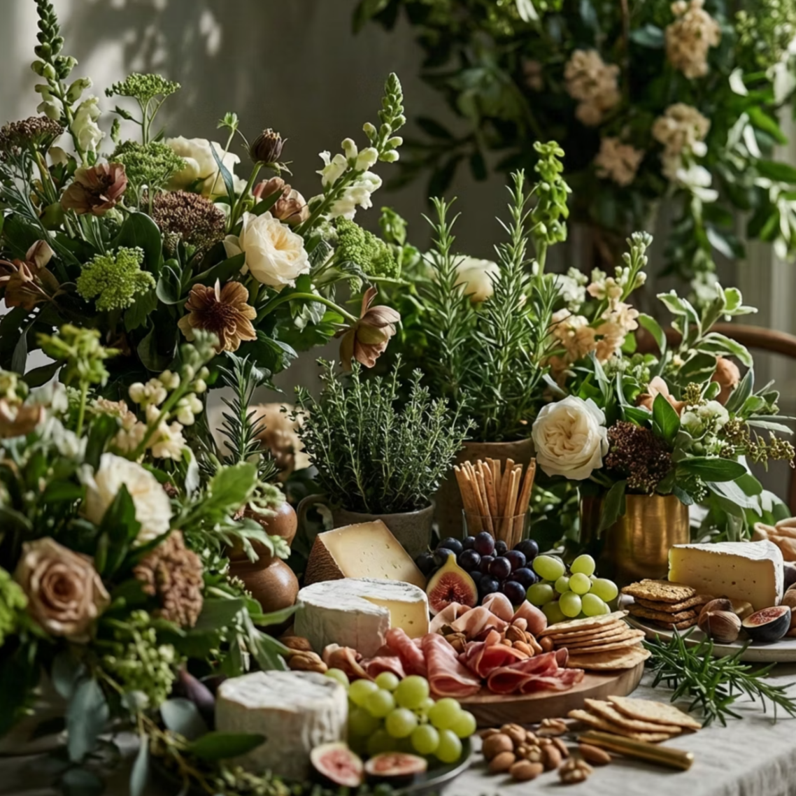La fraîcheur d'une table vivante où la verdure, les fleurs fraîches et les feuillages créent une ambiance raffinée et organique.